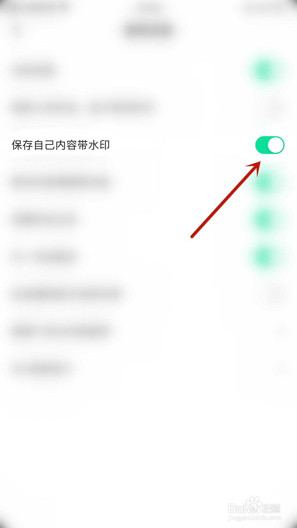 3、“保存自已内容带水印”后面的圆点变为灰色即表示抖音设置保存自已内容带水印关闭成功
