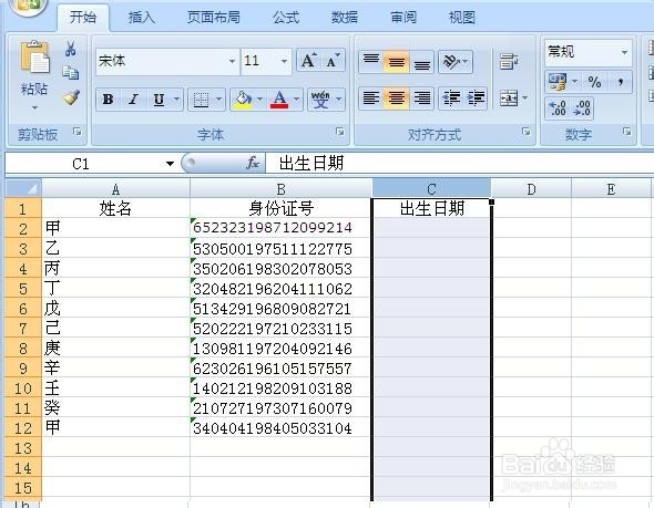 1、下面我们就用下面的模拟数据来和大家讲解如何用excel提取身份证出生日期