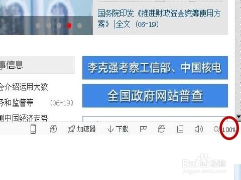 在网页的右下角有个百分数,那就是网页大小的比例。