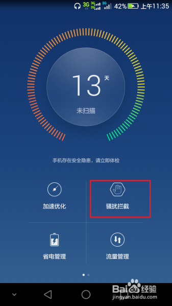 a)检查是否将短信号码设置为黑名单。如手机管家(华为手机预置)以及QQ手机管家等第三方安全管控应用。以手机管家为例查看黑名单: