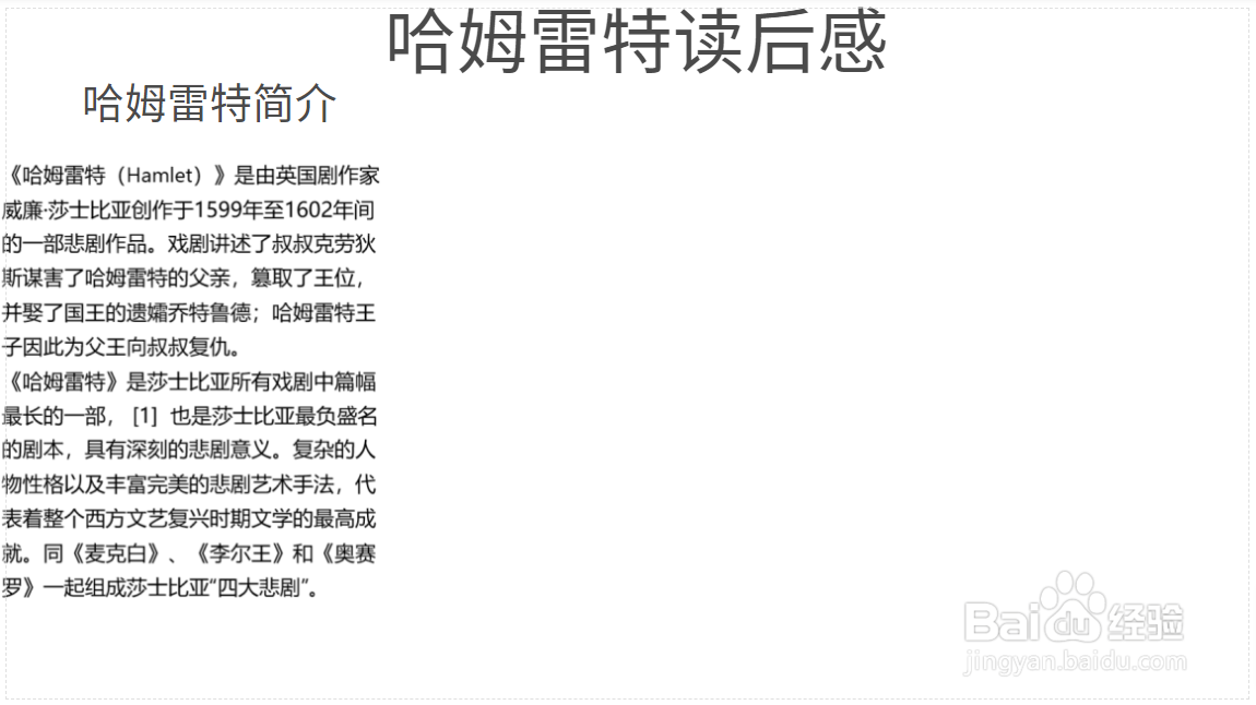 5、接下来在小标题下面介绍自己读哈姆雷特的感受。