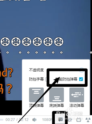4、点击右下角可以弹幕设置,打开【智能防挡弹幕】(其他视频是没有这个的)