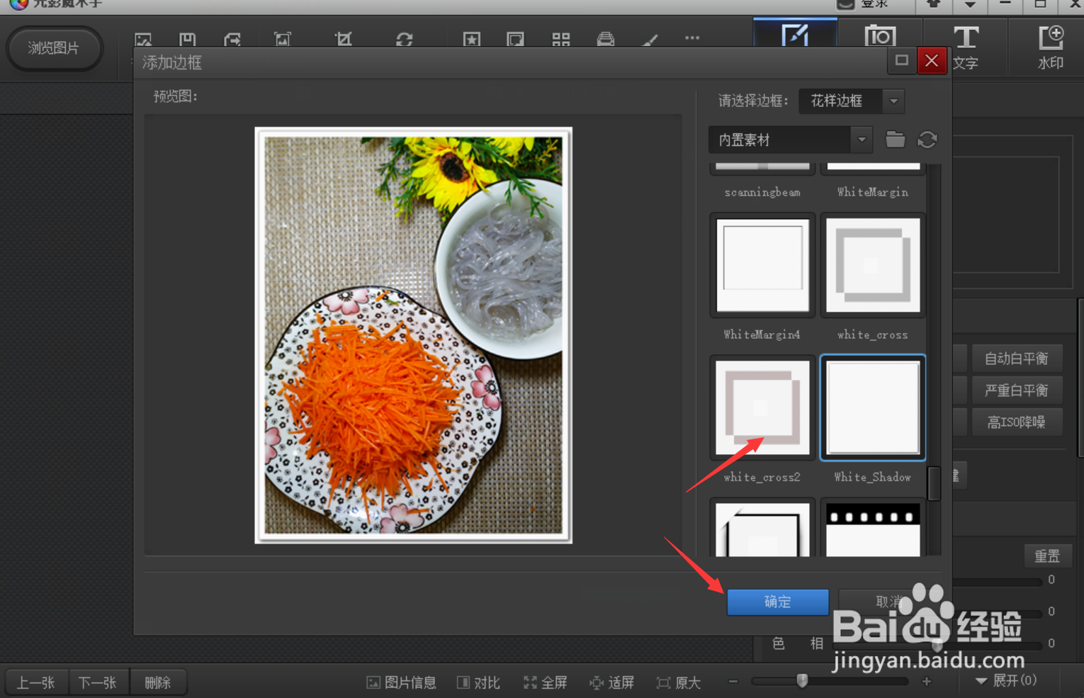 4、点击添加边框按钮,选择想要的边框,点击确定按钮。