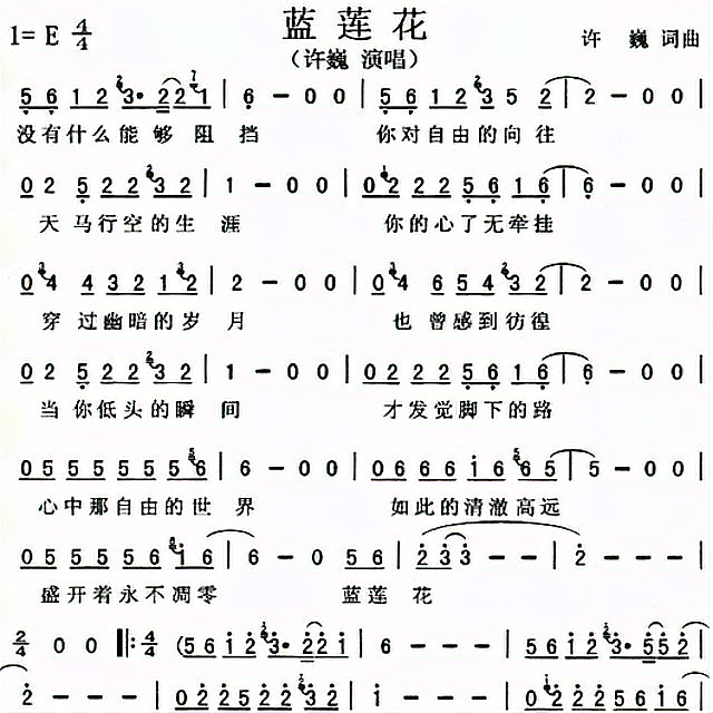 《蓝莲花》简谱如下:
