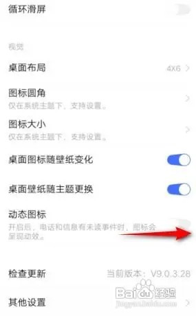 3、最后进入菜单设置里面先之后将动态图标的滑动按钮向右滑动,滑动完成后便可以开启动态图标。