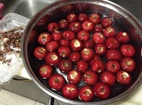 3、用吸纸把山楂擦干水分。一定要擦至无水分哦。