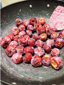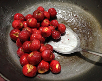 7、关火快速翻匀到每个山楂都粘上糖浆。