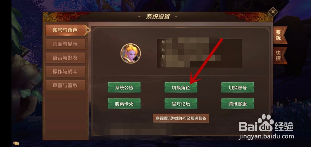 3、然后我们在里面点击【切换角色】按钮,在里面即可切换到角色页面,如图所示。