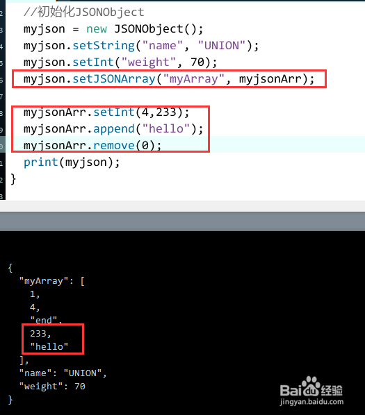 4、同理,在JSONObject和JSONArray中还可以使用setJSONArray嵌入一个JSON数组。