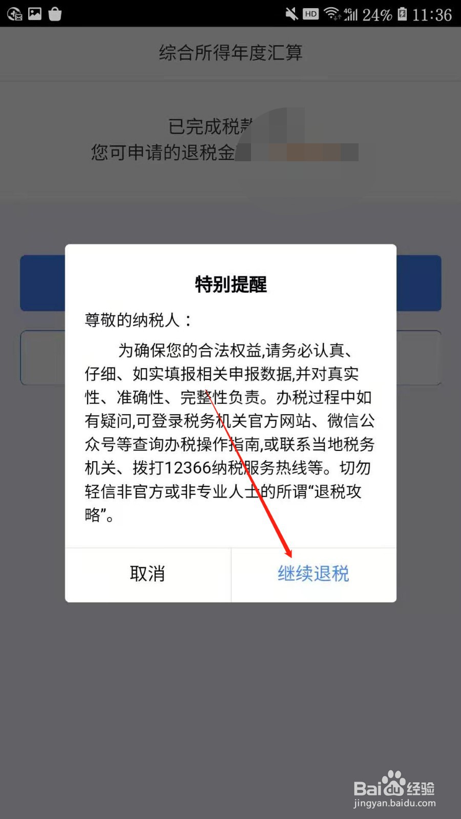 8、点击“继续退税”。