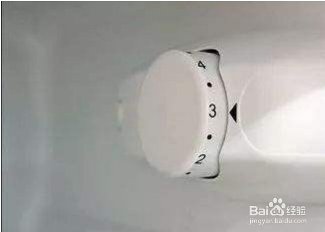 4、找到冰箱冷藏室的温控器调节一下问题就解决了。冰箱的温控器数字越小温度越高,反之数字越大温度最低,一般都是0-7档。家庭使用一般地区,调到2-3档即可。