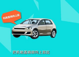 3、把汽车前盖盖稍微掀起一点,前端内部有一个暗开关。