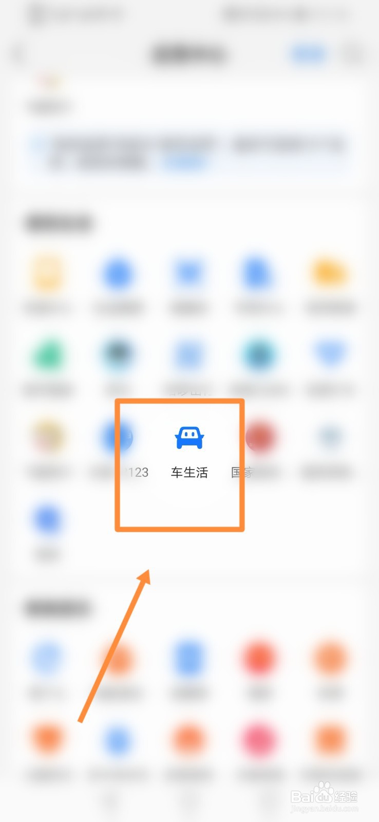 1、首先我们打开支付宝,找到车生活菜单,点击进入。