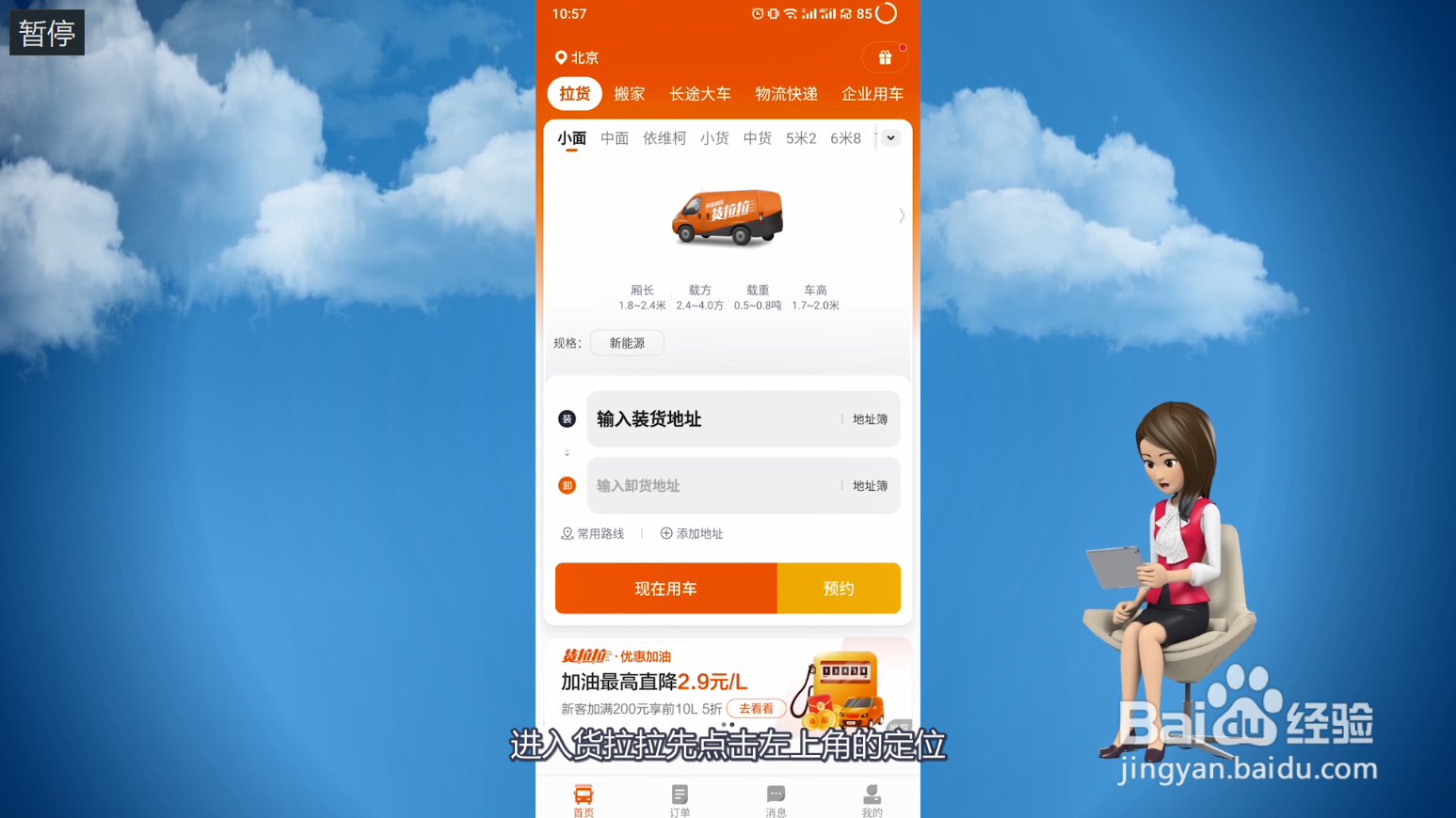 进入货拉拉先点击左上角的定位,定位到当前位置。