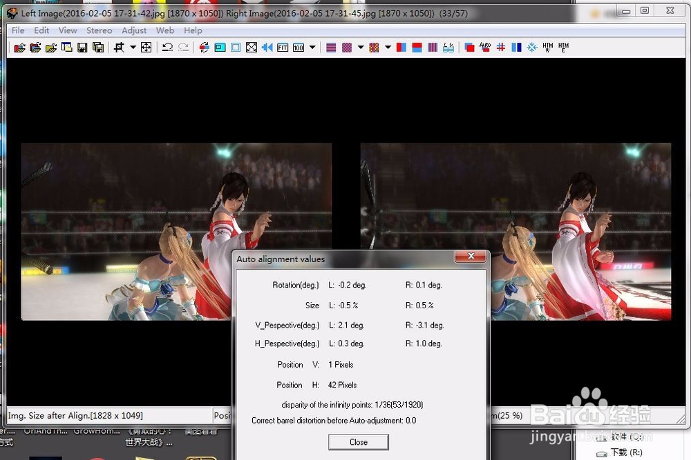 4、点击 Auto alignment 按钮,以自动调整两个图像的偏移,使得两图画面主体位置对其,便于观看。