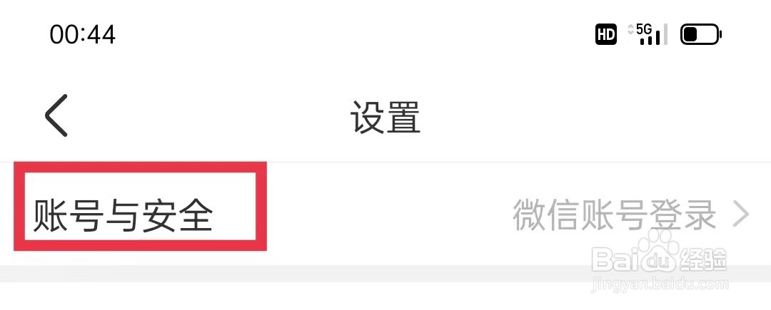 在设置页面找到并单击账号与安全,单击微博。