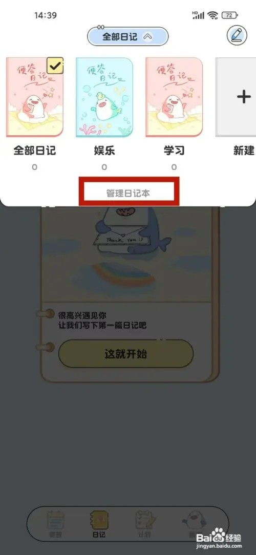 3、在管理日记本页面,点击日记本上面【编辑】进入。