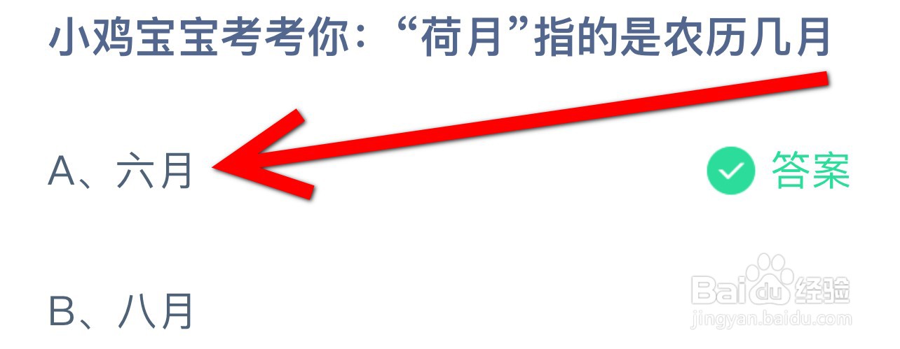 1、题目:小鸡宝宝考考你:“荷月”指的是农历几月?