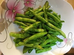 4、起锅烧油,待油温6成下四季豆过油。炸制2分钟捞出即可。