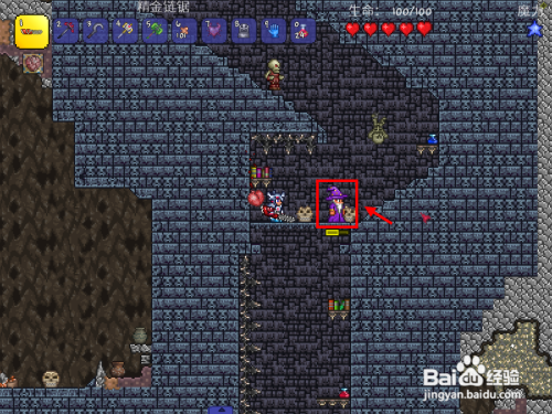 2、接着魔法商人npc在地下开放区域随机生成,概率较低,主要出售魔法商品。