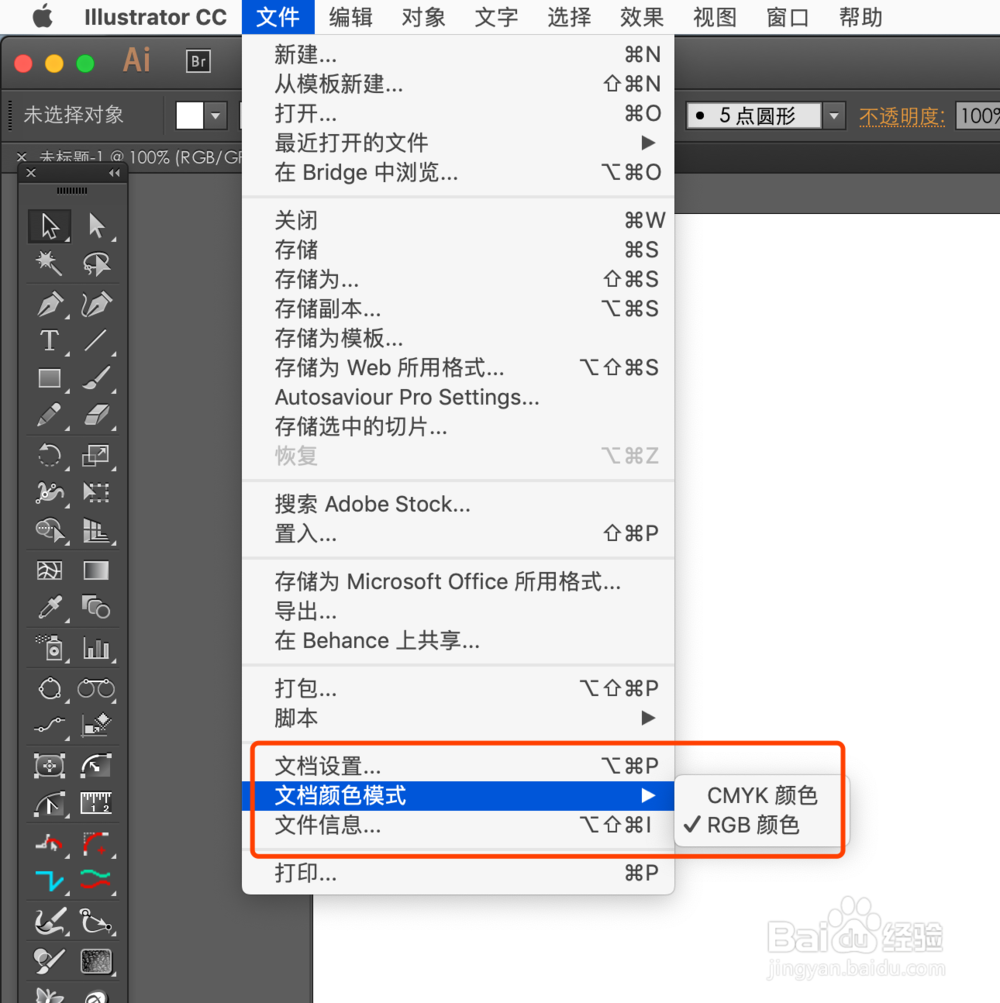 2、文件--文档颜色模式--RGB/CMYK.