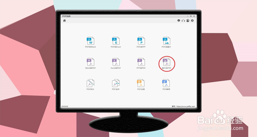3、点击选择【图片转PDF】的功能。