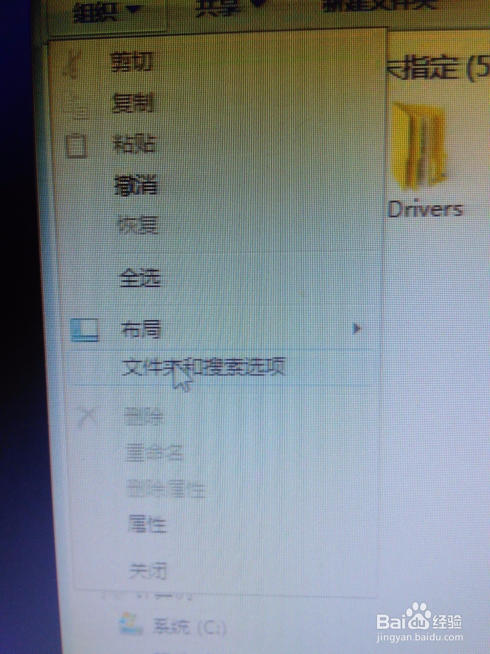 3、双击计算机,打开c盘。工具,文件夹选项,查看,如下图,把带隐藏的几个对号去掉,目的是显示出隐藏的系统文件oemsy.