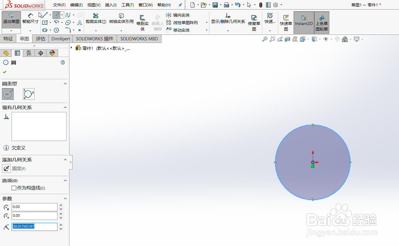 6、点击“绘制-圆”,绘制一个较小的圆。