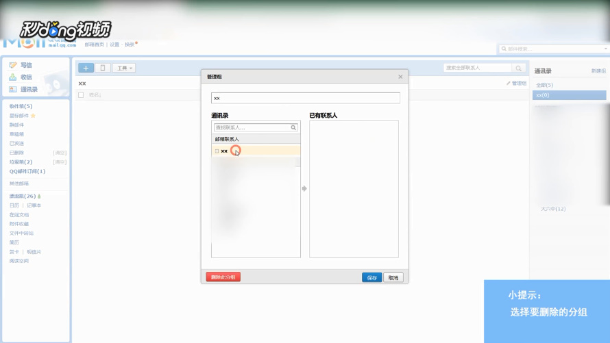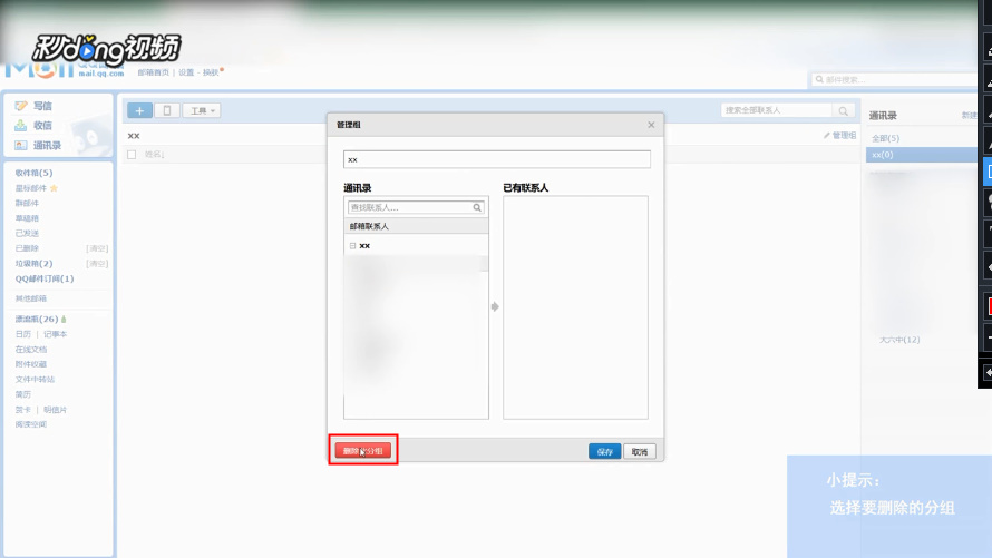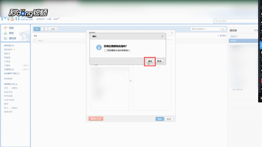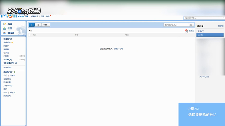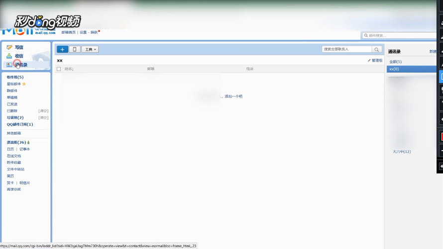 1、进入QQ邮箱首页后,点击左侧的“通讯录”菜单项进入通讯录。