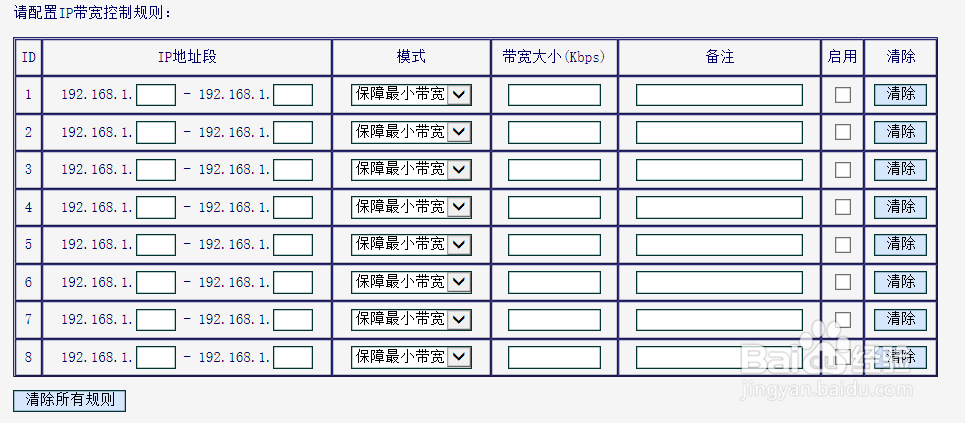 7、填写要设置网速的IP地址段,并设置带宽大小------点击保存(填写完之后记得保存)