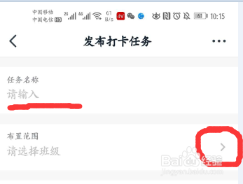 4、自定义任务,需要输入任务名称,根据自己需要设置的任务名称填写即可,然后选择布置范围,点击选择班级后会弹出自己所在的班级列表,选择需要发布的班级即可。
