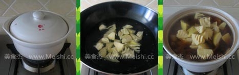6、待牛肉炖了一个小时后,将春笋放入继续炖牛肉半小时