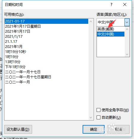 word文档怎么插入英文的日期和时间?