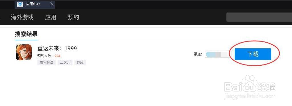 3、在“应用中心”或者顶部搜索栏输入游戏名称,搜索到游戏后,点击“下载”,下载完成后软件会自动开始安装。