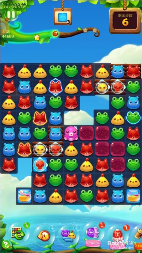 1、首先在刚开始游戏的时候,要大至看一下,有什么特效可以打出来,且打哪一步最利于下一步的操作。而且要记着,一般情况下,从下面打往往对通关有利。