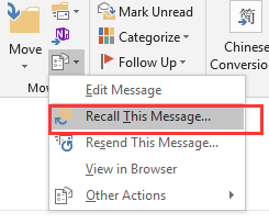 Outlook 2016 英文版如何撤回已发送的邮件