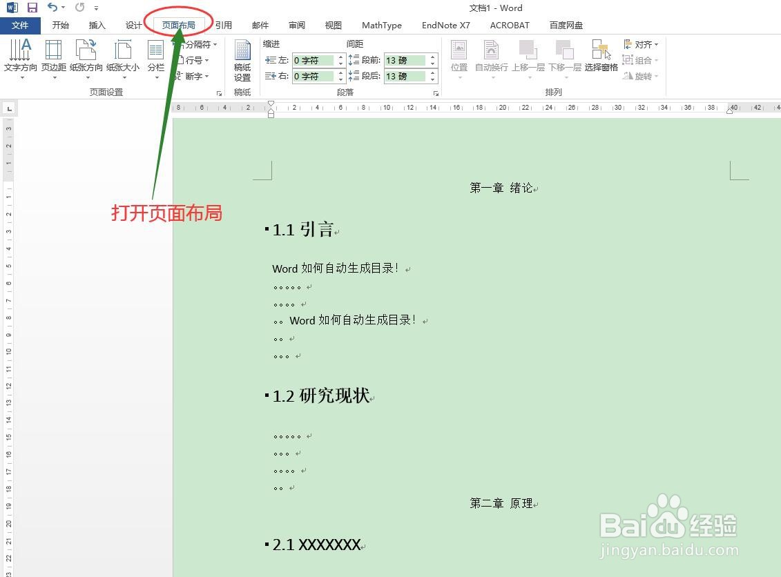 2、在第一章前面添加一个分页符。依次选择“分隔符”--“分页符”