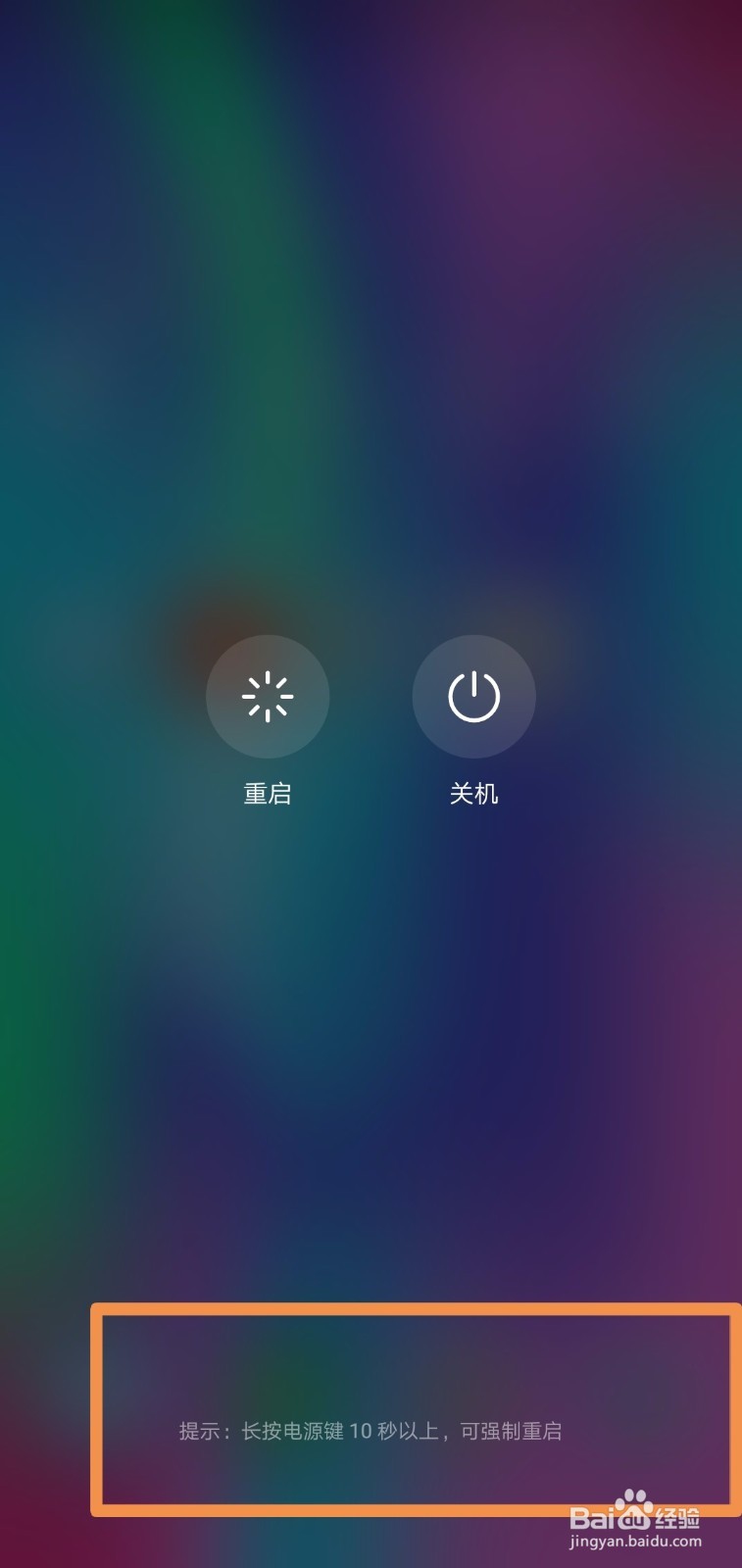 2、我们如果用的到死机之后,没办法动了然后我们可以强制性开机,一直按住它手机的开机键保持10秒以上就可以强制开机。