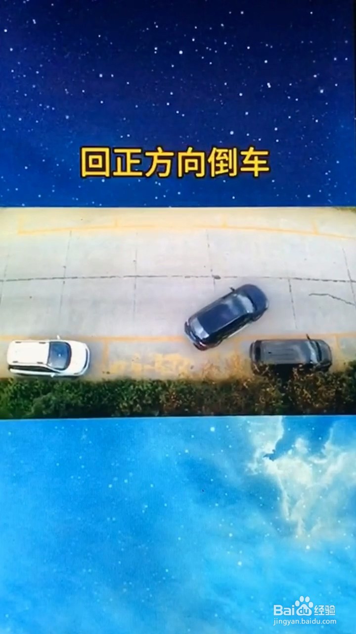 4、当右车头与前车车尾当平行时,左后轮压线,向左打满方向盘倒车即可。