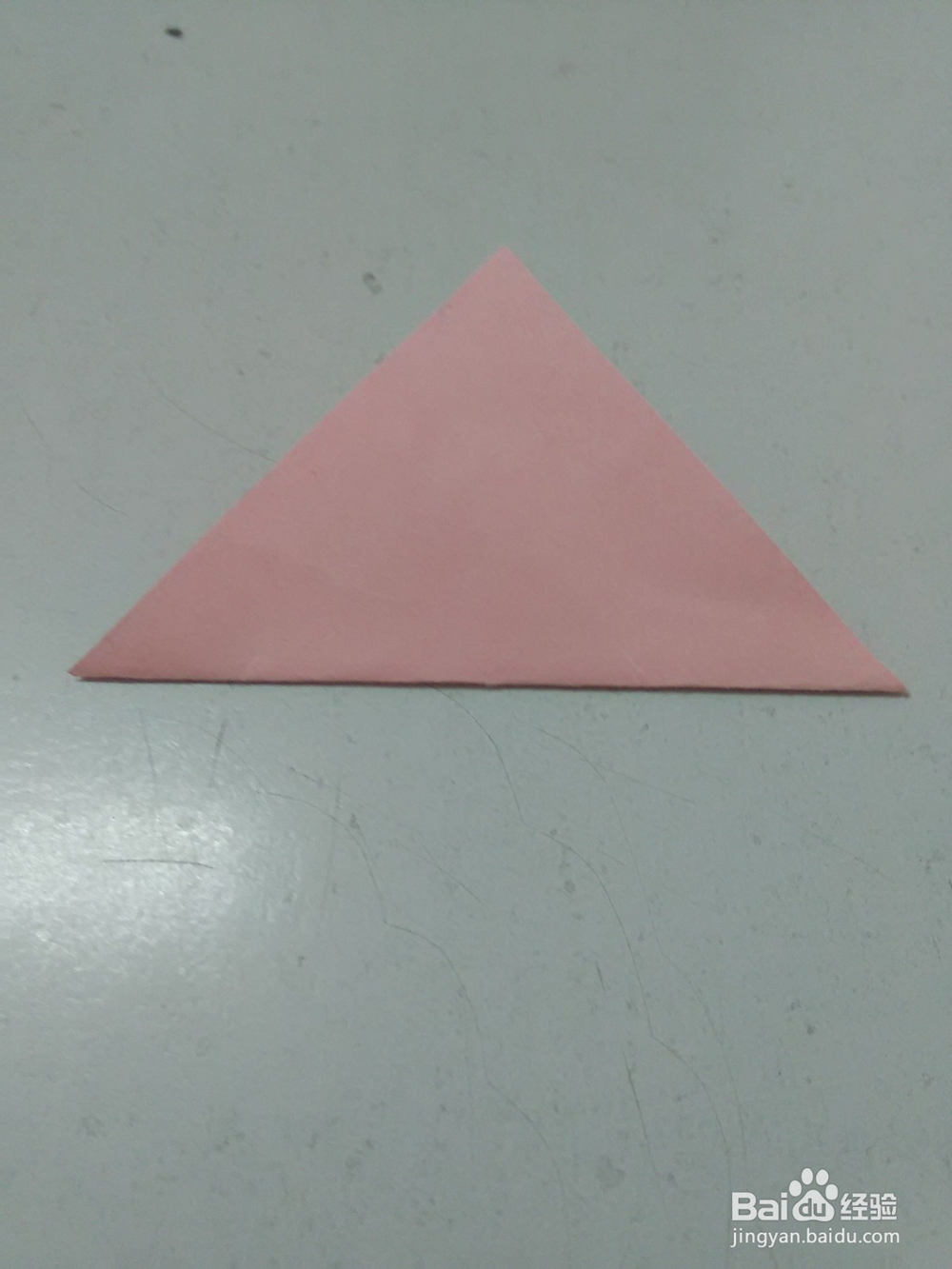 3、将三角形右面的角往左折,折后,将三角形分成三等份。