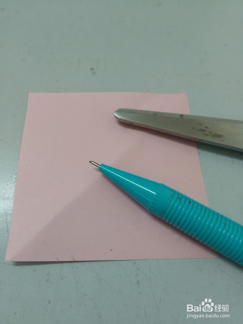 1、将彩纸、剪刀和铅笔准备好。彩纸要准备正方形的。