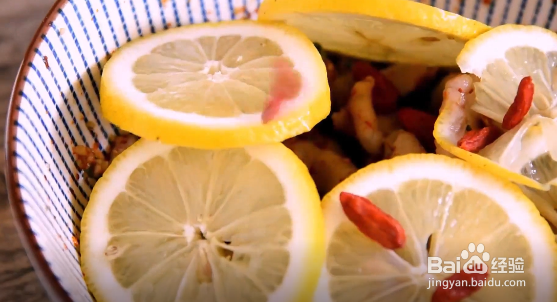 8、最后放入柠檬、枸杞,封上保鲜膜。