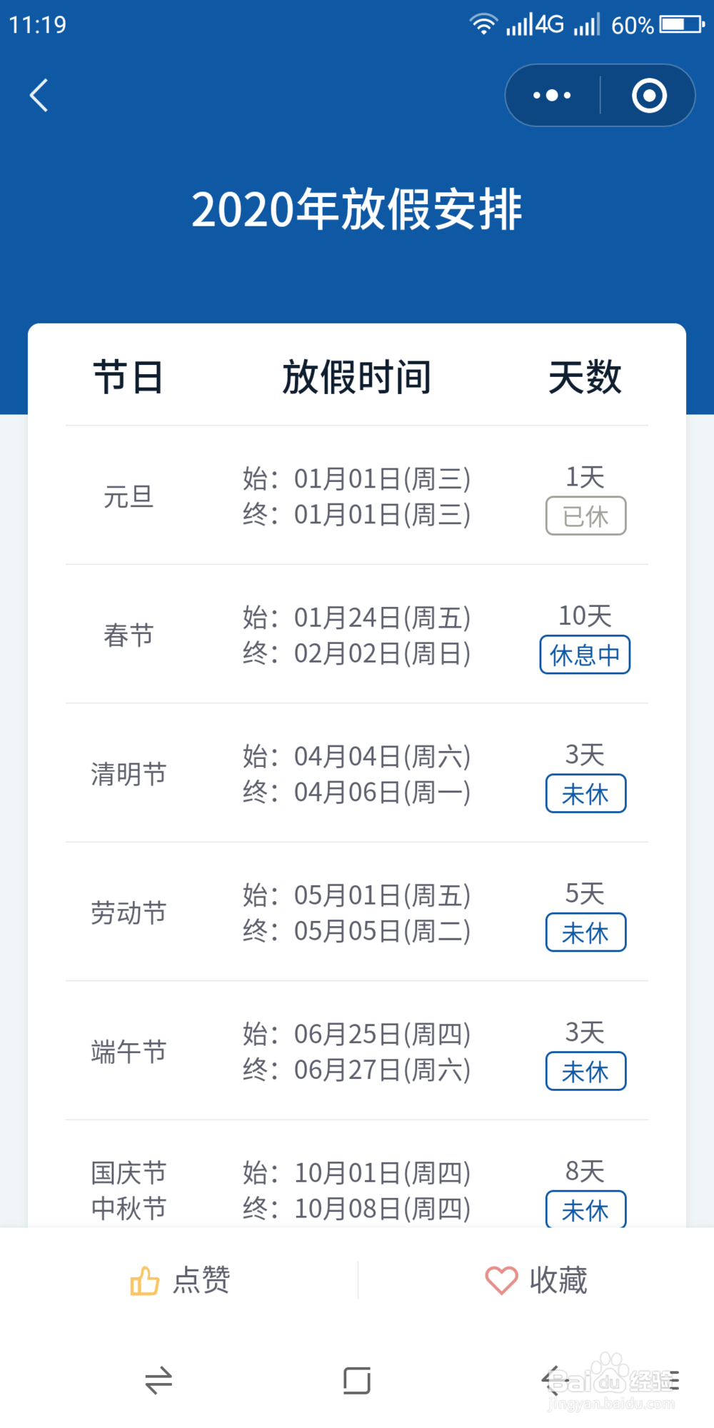 6、进入【国务院客户端】的假期安排页面,查看假期详情