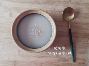 3、将酵母水 分批一点点 倒进去~不要一下子全部倒哦~
