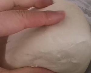 手捏面团,微微有点粘粘的感觉,但是手拿开后 面团是完全不会粘手的哦!这种是最好的哦