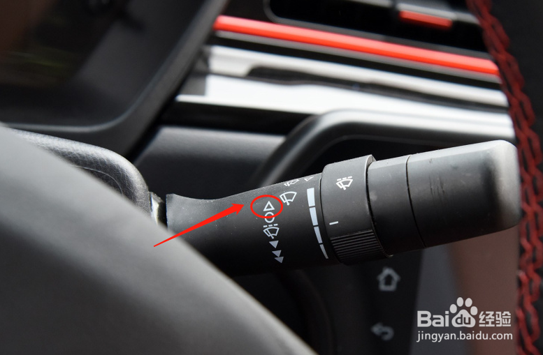 5、雨刮控制杆推到“▽”档位为低速雨刮动作档位。