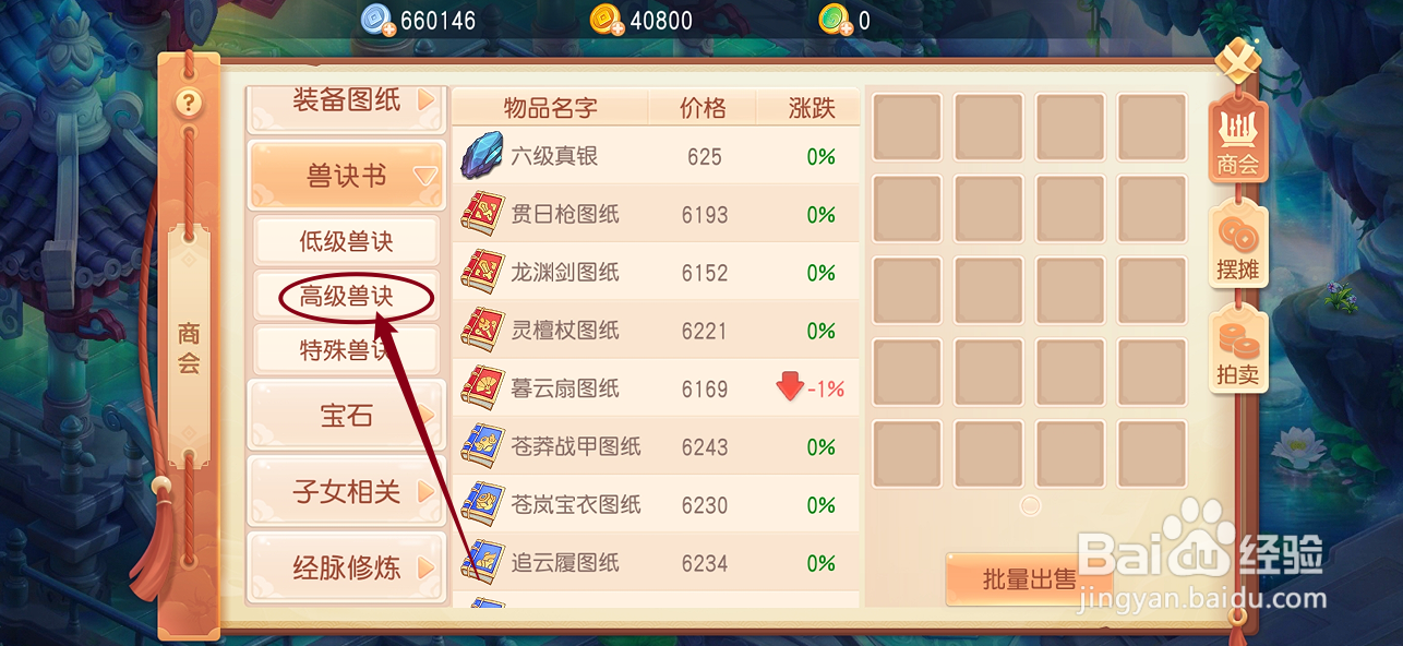 1、首先,打开御剑红尘,进入游戏界面,点击页面上的【高级兽诀】图标。