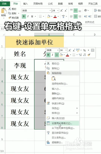 excle如何批量设置单位