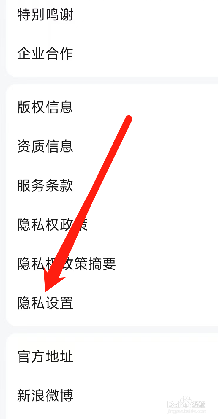 点击【隐私设置】选项,我们就可以进行隐私设置了。