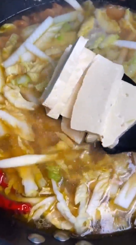 1、准备干辣椒、八角、葱切段、白菜切条、五花肉切块、豆腐切块、海带结洗净、粉条泡水。